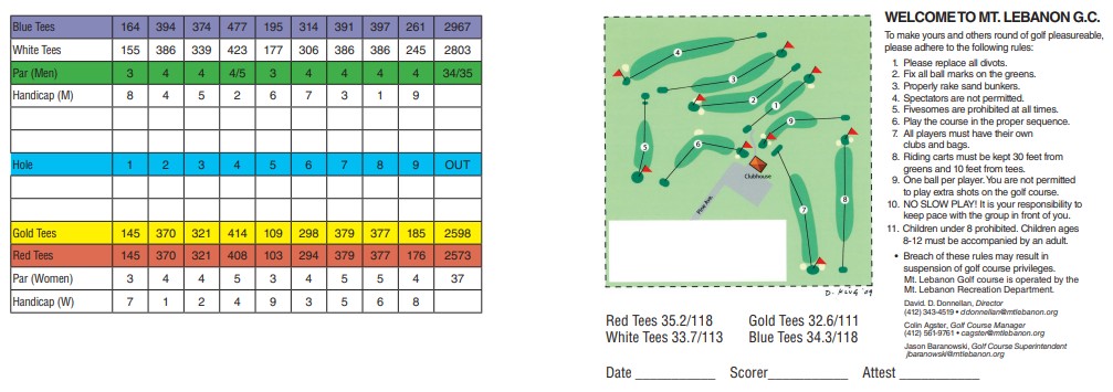 Mt. Lebanon Golf Course offers handicap service – GHIN by the WPGA. For more information, call the golf shop at (412) 561-9761.